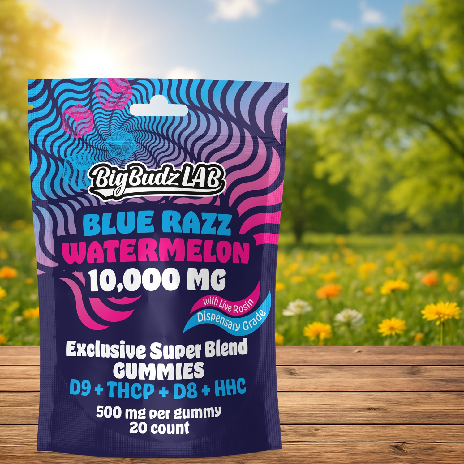 Our Blue Razz Watermelon D9+THCp+D8+HHC Gummies – 10,000mg are designed for experienced users seeking bold flavors and potent effects.