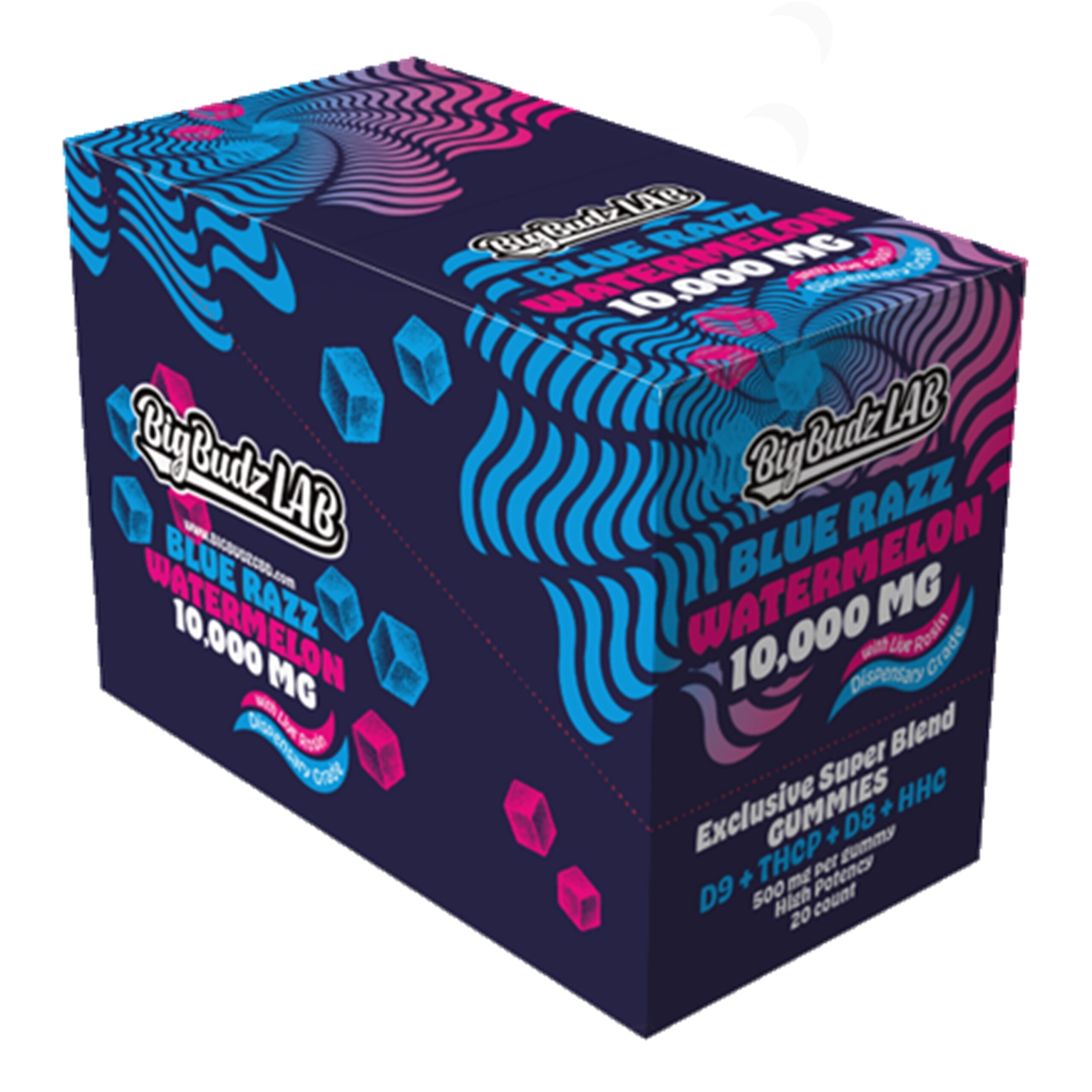 Take your cannabinoid experience to the next level with Blue Razz Watermelon D9+THCp+D8+HHC Gummies – 10,000mg.