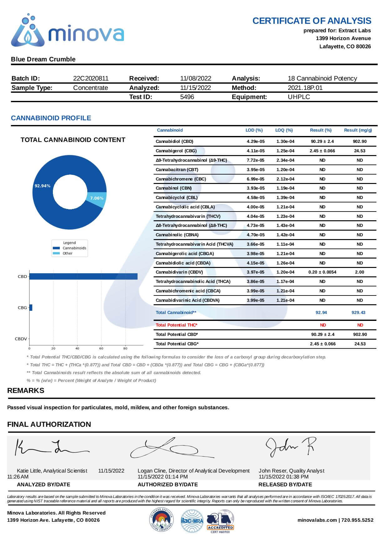 Extract Labs - Blue Dream Crumble – 1 Gram – 800mg CBD + THC