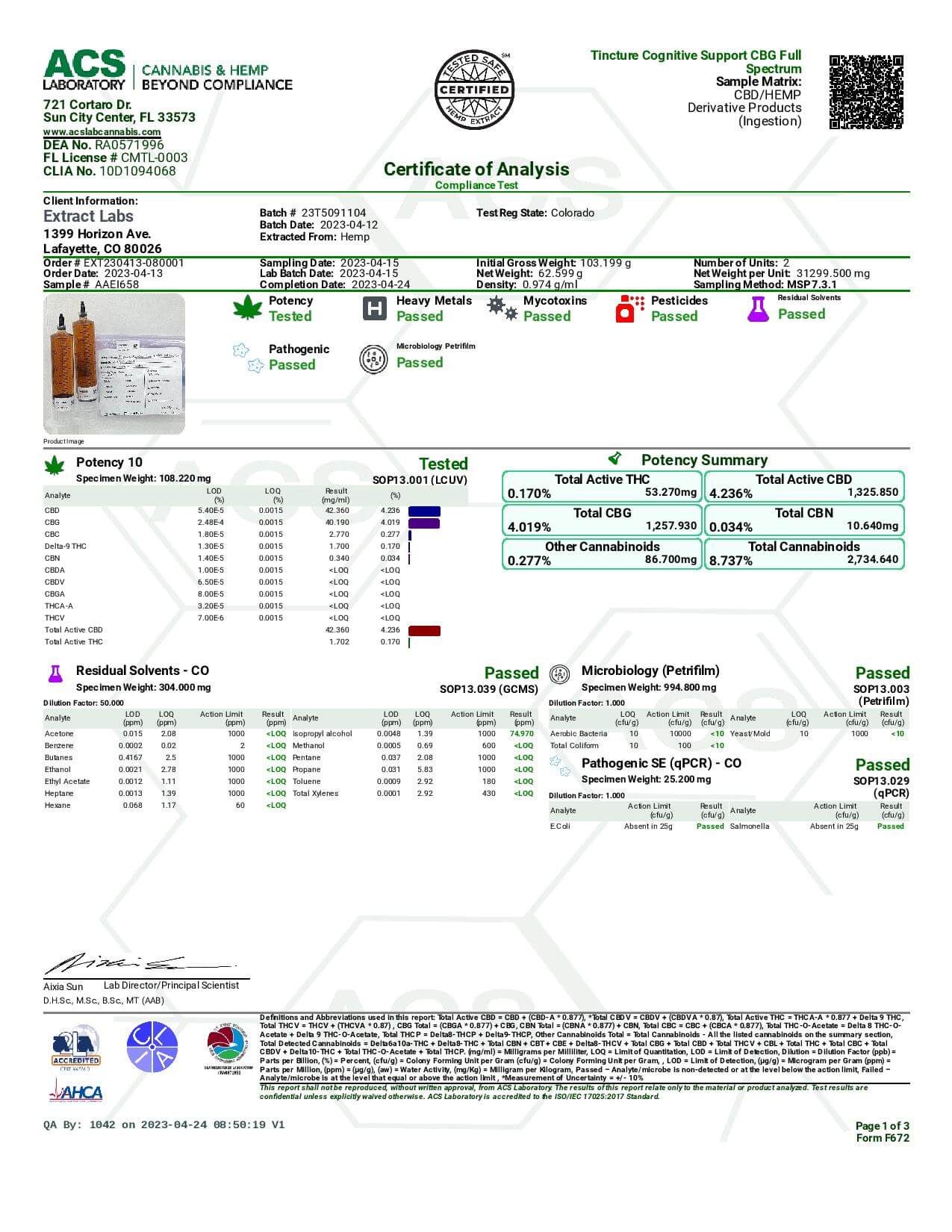 Extract Labs - Cognitive Support Tincture – 1000mg CBD + 1000mg CBG